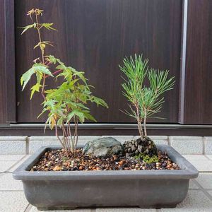 盆栽をはじめました。 特に右側の松が気に入っています♪ 松ぼっくりから生えている松です。 たまりません❤️
