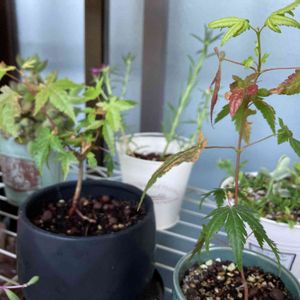 家の裏の公園にいろは紅葉が植えられており、その種が我が家の裏通路で発芽…小さな苗を植木鉢に植えました。 盆栽のように育ててみようかな😃