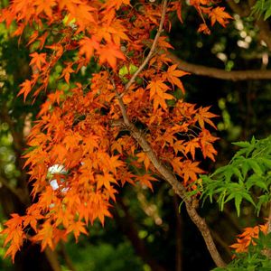 イロハモミジ:いろは紅葉:Japanese maple ♡桃源郷岬シリーズ:第19弾❣️ ☆平地に降りて来て.左側には、この写真画像のイロハモミジ:いろは紅葉があった。 案内板には、樹齢200年と明記されていたので、よく観てみたら老木らしく大きな裂け目が見られて、二つ大きな幹に分かれていて、2本の木がくっついているようにも見えます。 ♡イロハモミジ全般をあらわす言葉には、「大切な思い出」「調和」「遠慮」などがあります。 イロハモミジの花言葉「美しい変化」「調和」などは、イロハモミジが美しく紅葉することにちなみます。 葉が赤く美しく変化して、周りの緑や黄色の木々と調和して美しい様子からこの花言葉になったとされています。 【豆知識】 イロハモミジ:いろは紅葉 学名 Acer palmatumは、ムクロジ科カエデ属の落葉高木である。 イロハカエデ:いろは楓などとも呼ばれる。 属 : カエデ属 Acer 種 : イロハモミジ A. palmatum 学名: Acer palmatum Thunberg 和名 イロハモミジ(いろは紅葉) イロハカエデ(いろは楓) タカオカエデ(高雄楓) コハモミジ(小葉紅葉) 英名: Japanese maple 日本では最もよく見られるカエデ属の種で、紅葉の代表種。 本種より作られた園芸種も多い(#変種・園芸種を参照)。 ☆分布 東アジア(日本、朝鮮半島、中国、台湾)に自生する。 日本では、本州以南の平地から標高 1000m 程度にかけての低山で多く見られる。 ☆特徴 樹高 15m、幹の直径は 80cm 以上に達する。雌雄同株。 葉は長さ 3.5~6cm、幅 3~7cm で、掌状に深く 5~9裂する。 和名は、この裂片を「いろはにほへと……」と数えたことに由来する。 裂片の縁には鋭く不揃いの重鋸歯があり、裂片の先は長く尾状に伸びる。 秋(10~12月)には黄褐色から紅色に紅葉して散る。 葉はオオモミジやヤマモミジなどに似るが、本種の葉は一回り小さく、鋸葉が粗く不揃いなところで区別される。 花期は春(4~5月)花は直径 5~6mm。 暗紫色で 5個の萼片と、黄緑色もしくは紫色を帯びる萼片より小さい 5個の花弁をもつ。風媒花。 果実は翼果、長さ 1.5cm 程度の翼があり、夏から初秋にかけて熟すと風で飛ばされる。 by Kazyan’s Green Box Artistic flowers:Japanese maple;いろは紅葉 2020/6/12//past pm 01:15' shooting 2020/6/15//past am 00:00' upload