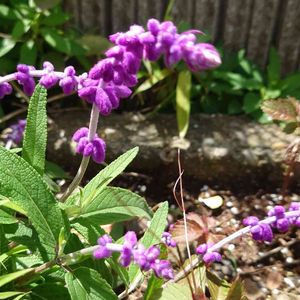 メキシカンブッシュセージ シソ科宿根草 別名、アメジストセージ 花言葉「家族愛」「家庭的」 大きく腕を広げ踊ってました。額が💜小さな白い花が 密に成ってさいてます。