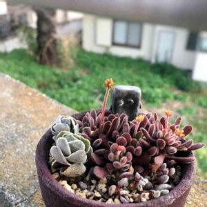 ほったらかしすぎた ストロベリーポット トチョッて暴れまくりのクラッスラ😆 ブベ助もギュウギュウ😝 右上にちょっと見えてるのは、ウィンクレリー 一時期モリモリだったけと、今はちょっと控えめ😅 今日は天気が良くて暖かいので 場所移動しました。