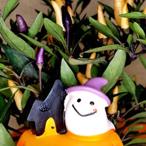 橙色と紫🌶ハロウィンカラーの唐辛子🌶魔除けに猫ピック🐈⬛付けてみました🎶2年目になるアロマティカスは2倍の大きさに成長中🪴