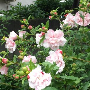 💕✨ムクゲ✨💕 おはよう御座います😊。 GSさんのpic投稿に触発されて、ムクゲが我が家にやって来ました。 ピンクの八重咲きムクゲです。