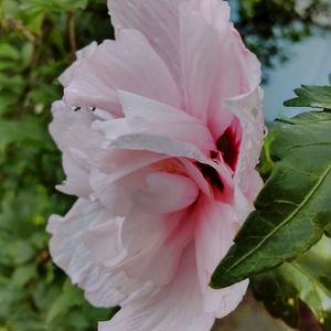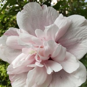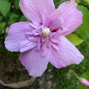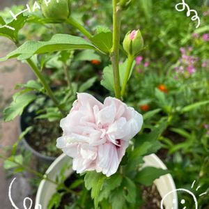 ムクゲの花がまたポツポツと咲き始めました🌸 八重咲きで淡いピンク色のお花がかわいいです💞