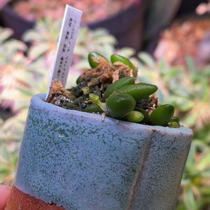 なんの予定もない雨の連休😑期待しないで近くのHCで嬉しい出会い💕 ①母の蘭?全く何かわからない枯れ枯れのコを植替え。救済なるか? ②新芽が二つ見えてます。嬉しい☺️ ③白星さん、まだちっちゃい。いや〜可愛い👶 ④小人の祭り。錦はあるけど元気そうなノーマル見つけて即カゴへ。 ⑤王冠マーク👑のエケベリア。よく売れ残っててくれた!今は何の変哲もないミドリンだけど紅葉が楽しみなのよ😊
