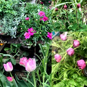 昨夜の雨でチューリップがおじぎをしてしまいました。😢 マーガレット オダマキ ラベンダー に新しい蕾、開花が楽しみです😊