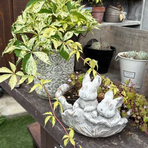 雨・風が強すぎて怖いです😱 ①細かい枝と粒々の蕾がいっぱい付いていたクレマチス・キャサリンチャップマン 超小輪のお花が可愛いです✨ ②冬に地植えしたアジサイ・コットンキャンディー 白花が少しずつピンクを帯びて来て可愛すぎです。 ③コットンキャンディのお隣に山アジサイ・藍姫も地植え (藍じゃなくて赤紫姫ですが、、、) 昨シーズンはすぐに水切れするのが悩みだったのが、今年はみるみる大株になってお花がいっぱいです。 ④ようやく咲いたバラ・岳の夢 ⑤クリスタルヴェールが大株すぎるのでお引越し まだ施工途中(2年くらい放置中)の階段は先日、階段部分を壊してしまった😅やり直しだぁ💦