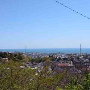 いい天気 常磐線日立駅からの大平洋 とオリーブの鉢植え