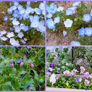 いつもの100均ネモフィラ、今年もたくさん咲きました(*^^*) 今年は白色が多めだったようで、より爽やかな雰囲気です♫ セリンセとビオラは今年初めて種まきして育てた子です(๑´ڡ`๑)