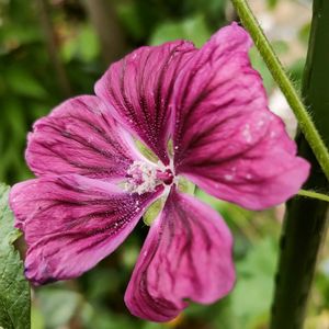 🥀コモンマロウ 和名ウスベニアオイ🥀 絶賛開花中です😆👍💜 去年の春に直播した種 今年ようやくお花が咲きました❀💜 2️⃣こんなに背丈が伸びるとは😲‼️ タワマンハーブですね~🤣👍 3️⃣ハーブティーにしたくって乾燥させてます。 今日は風が強くて、部屋のアチコチにお散歩してました🍃