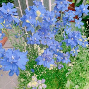 デルフィニウム・デルフィックスがきれいに咲いています💙 長く楽しめるように軒下に入れてみました🏠 同じ鉢に種まきっ子のオンファロデスとノラナも寄せてあるけど、オンファロデスはもう咲き終わり、ノラナはポツポツで全然コラボになってません🤣 青い花つながりで… ③種まきっ子のシノグロッサムも今きれいです💙 ④ピンボケですが、こぼれ種のギリアです。うちではちゃんと種まきしてもあまり咲かないので、今期は蒔きませんでした。こぼれてくれてありがとう😂💙