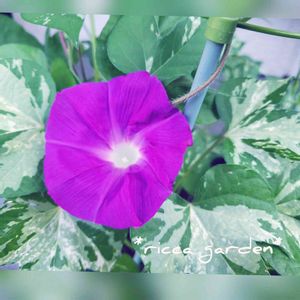 咲きそうだな、と思っていた朝顔が咲きました🎵 お花はとっても…普通!😂 多分DAISOの、ミニ丈のあさがおです。斑入りの葉っぱがきれいね😍 追記 ツルが伸びない、って謳われてたけど…普通に伸びてます💦まさかDAISOのじゃない?!😂 更に追記 ツル無しは他のところに居ました!これは去年までの子らしいです。こんなお顔の子居なかったのに😅