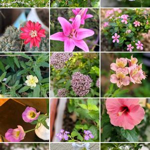 左上マダムジュリアコレボンの2番花咲いています🌼右下のユウギリソウもなかなか良い色🍷😍まぁるいお顔のハイビスカスは元気をもらえる~🙌今日も1日頑張るよ🐼🛟☀️