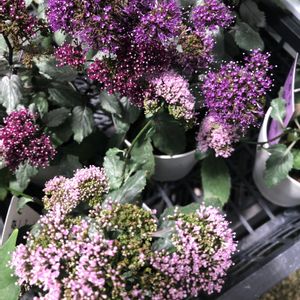 “ユウギリソウ” シックなお花に出会いました✨ 花火みたいで、黒い枝がカッコよくて、葉っぱも素敵カラー💜💚🖤 お手頃価格だったHBスターチス達もまとめて購入できて久々にテンション上がりました♪