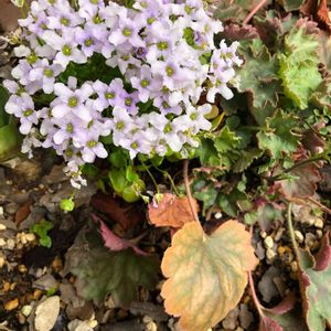 ひな草です。 零れ種で気がつくと咲いています。 小さい可愛い花ですが丈夫ですね。 ツボサンゴが迷惑そうにしています☺️