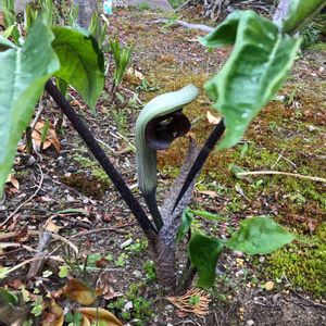 まるでポケモン⁈ 去年植えたムサシアブミちゃんと咲きました。凛々しい姿です。