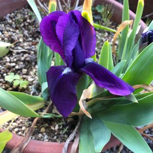 寒アヤメ。思ってた色と違いましたがそんなに葉が出ていないのに突然咲いた!という印象です。 未だ芽が出たばかりの花が多い中、驚かされました