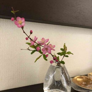 春の嵐を避けて一輪部屋に飾りました。 庭の枝の方は、明日には花弁ひとつも無かったりして💦