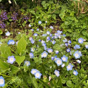 秋に種まきしたネモフィラが咲きました。間引きをサボったので花が小さいです💦