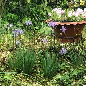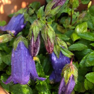 頂き物で名前がわからないです。カンパニュラの一種でしょうか? 雨の中しっとり咲いています。