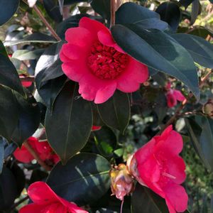 地元に帰りウチのわんこと散歩道 やぶ椿が満開です。 あったかい〜