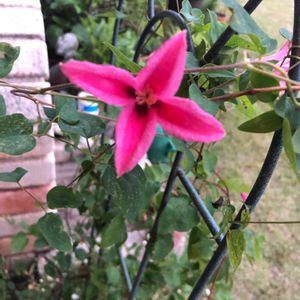 紫のクレマチスがうどん粉病で下までカット!こちらダイアナは無事でホッとしています‼︎毎年一つ二つしか咲いてはくれません
