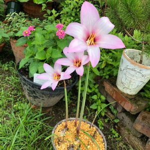 実家の庭に転がってた球根。持ち帰って植えてみたら これでした!元気に咲いた。鹿沼土に植えたのにさすが球根の力