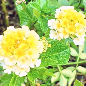 黄色&白が可愛いランタナの もこりんちゃん 初夏よりずっと元気に咲いてくれてます 𖡼.𖤣𖥧🍋‘٩꒰。•◡•。꒱۶’🍋𖡼.𖤣𖥧⚘