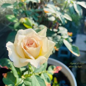 こんにちは♪̊̈♪̆̈ こちらは相変らずの猛暑です🌞 蕾をひとつだけ残したバラが 綺麗な形で咲いてくれました🌹 沙紗(サーシャ)と言います 娘の名前の漢字が1文字入ってて 気に入ってお迎えしました🥰 淡いマスタードイエローのような なんとも表現の難しい色🤔 葉っぱが少し焼けてしまって可哀想💧 回復して 秋には沢山咲いてくれたらいいな (∩´∀`∩)𓈒゚・*:.。❁