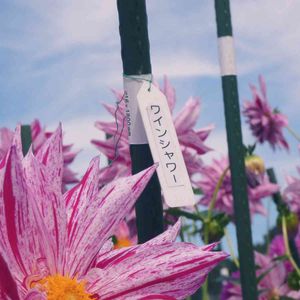 「ダリア園💠」その⑬ (栃木県茂木町) *もてぎの森ダリア園* ひとつひとつのダリアに、ポールがあり名前が付いている。この花💠は、カタカナ名だか、「花嫁人形」などネーミングが面白いものもある。