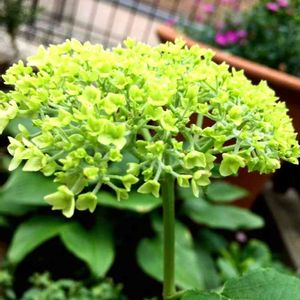 アナベル ルビー 蕾を2つ見つけた時に、この時期に咲くの?と 思ってタグを見たら、花期が6~10月になって いました❁*·⑅色は薄く小さいけれど咲いてくれて、とってもうれしいです💚 先日の台風で大きい方の蕾は、折れてしまいました💧
