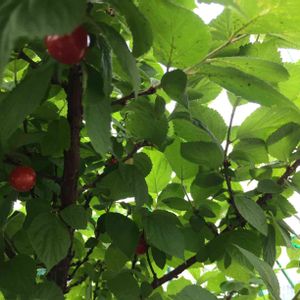 あおうみうしさんに名前を教えてもらった「ユスラウメ」 赤い実をつけました🔴🔴🔴