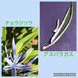 開花した丁子草と 初物のアスパラガス💕💕💕