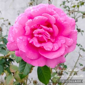 おはようございます☁😊 雨の中、遠目には赤く見えたバラ。近寄って見ると濃いピンク😍 プレートには「マリー・アントワネット」👸。納得の美しさ😍 💓秋雨に濡れるバラも良いですね💓 調べてみたら、ベルサイユの薔薇シリーズ「王妃アントワネット」のようです🌹 系 統 四季咲大輪系(HT) 作 出 メイアン社(仏) 花 色 濃いローズピンク 花 径 11~13cm 花弁数 30~45枚 花 形 波状弁抱え咲 樹 形 半直立性 樹 高 1.5m 香 り 強香 世界に知らぬ者のないフランス最後の王妃マリー・アントワネットの華麗さと優雅さを表現したバラです。 目を奪われるローズピンクの花色の鮮やかさと、ゆるやかにウェーブする花弁は、当時最先端のファッションを追い求めたアントワネットの艶姿を思わせます。花色にぴったりの、甘い、華やかなティーローズの香りを開花とともに放ちます。濃い緑色の葉も花を引き立たせています。 耐病性にすぐれたハイクオリティな品種で、枝の発生が良く、元気な株に成長します。見る者の心をたちまちとらえてしまうアントワネットの魅力を存分に感じさせる、まさに「女王のバラ」です。 2010年ダブリン国際コンクールHT部門最優秀賞 2011年リヨン国際コンクール グランドローズオブザセンチュリー賞&プレスティージドゥラローズ賞 他 品種登録済 品種登録名MEIMIRTYLUS、商標登録済 ※花壇や鉢植えで楽しむ、ガーデンタイプのバラです。{出典:京成バラ園芸株式会社のHP} バラ科バラ属🌿 英名∶La Reine Marie-Antoinette 花言葉(濃いピンク)∶感謝・称賛