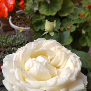 インフィニティーローズ😍 ミニ薔薇って書いて有ったけど花びらも多くて結構大輪です❣️ 白い薔薇は始めてなので大切に育てます🎵(パルシステムさんからのプレゼントです)