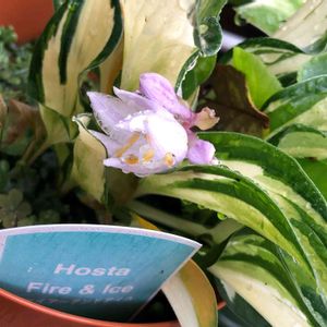 こんにちは☀ ギボウシ リーガルスプレンダー🌿 知り合いから株をいただいて3年目 初めてお花が咲きました✨ 斑入りの葉っぱが涼しげです🌿 他の2種類の斑入りギボウシは お花が咲きません🤔