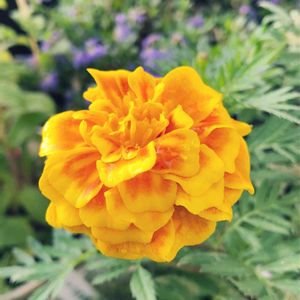こんばんは⭐️お疲れ様です❣️ 今日のお花🌼マリーゴールド🧡 風からの贈り物〜 プランターに勝手に生えてきたお花🌼 葉っぱがマーガレットに似ているので マーガレットが咲くのかなぁと思ったら 一週間ほど前につぼみがついて咲きました🙌 なんとかわいい〜マリーゴールド🧡 風がタネを運んでくれて私のお庭にやってきたんだね😊🎶 来てくれてありがとう❣️ すごく嬉しいです🥰 〜朝のお庭のパトロール〜