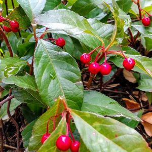 こんにちは、ヤブコウジその2、野鳥にも義理人情あるのでしょうか⁉️一個木のため残してます。茎は食べず綺麗に食べますね。