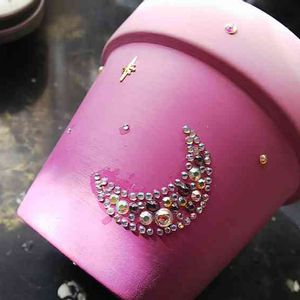 グラデーションに月🌙*.。星🌟。.:*・゜デコの鉢(ノ*°▽°)ノ ここにはピーチ姫入れようかな〜(❁´ω`❁)
