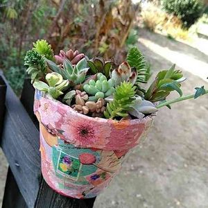 100均で狩った花麒麟 デコパージュした植木鉢(可愛く出来たかな⁉️)に お迎えしました✌️