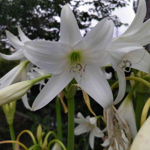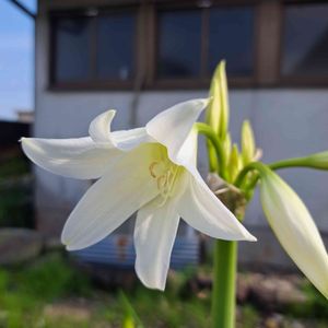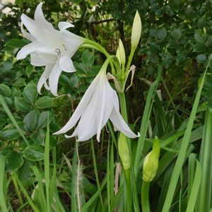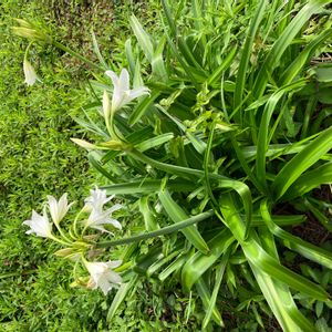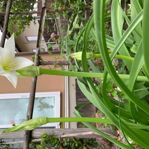 花は夜中に満開になります🎶 虫媒花で芳香のある花に〰︎ スズメガを呼び寄せます🤗 アフリカハマユウ ヒガンバナ科