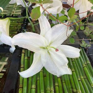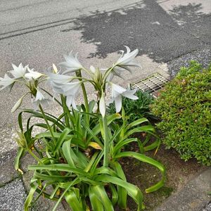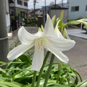 アフリカハマユウ(阿弗利加浜木綿) 別名:インドハマユウ ヒガンバナ科 花期:6〜7月 花は真っ白でテッポユリに似ています。 明治時代に輸入され、インドハマユウと呼ばれていたらしい! 昨日は練馬区立牧野記念庭園 学芸員の牧野由美子先生の「牧野富太郎の生涯」と題された講演を聞いてきました。 色んなお話の中、牧野博士は音楽も趣味とされていたらしく、博士作詞の「植物採集行進曲」を博士のひ孫さん牧野一浡さんのギターに合わせ、皆んなで歌ってきました♪ その帰り道、駅前の植栽でしょう、美しいアフリカハマユウとの初めての出会いでした♪