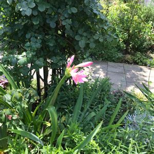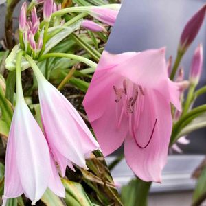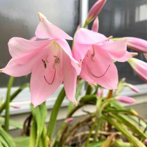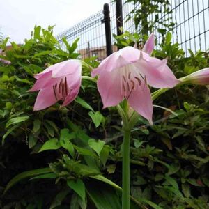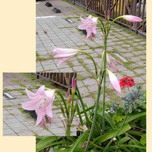 アフリカハマユウ、ピンク💕 ヒガンバナ科ハマオモト属 ピンク色のアフリカハマユウがきれいに咲いています😃 鱗茎は大きく、長さ8~10㎝ 葉は長さ50~80㎝、幅3~5㎝ 花茎は長さ45~75㎝ 花は8~13個つく、 以前は「インドハマユウ」と呼ばれてましたが、 最近、学名が改められ、呼び名「アフリカハマユウ」に変えられました😃 🌱🌱🌱 花だけを見ると、「夏水仙」にも似ていますが、こちらの「アフリカハマユウ」には花と同時に葉が出ています🤗 「夏水仙」の花が咲くときには、葉は枯れてありません🤗 🌱🌱🌱🌱 垂水レバンテ南側駐車場 神戸市垂水区