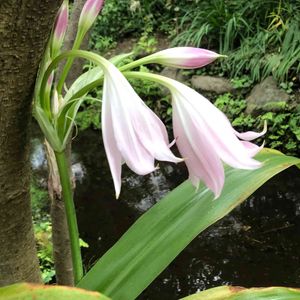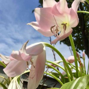 淡いピンクの、アフリカハマユウ。 なんだか、お花が大口開けて豪快に笑っているように見えます(*^◯^*)