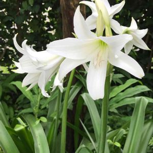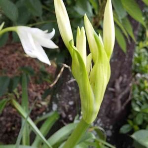 新しく整備したお庭に現れたこのお花 ハマユウでしょうか? 以前の庭ではうっそうとした木々の中でひっそり咲いていたのかも… 会えてよかった💕