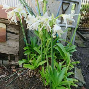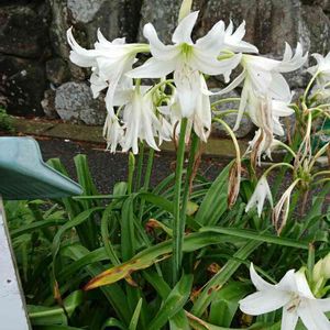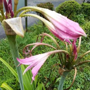 アフリカハマユウ(クリナム) ✤彼岸花科✤南アフリカ原産 自宅前のお宅に沢山あり 名前がわかりませんでしたが 最近やっと判明しました。 葉っぱがハマユウにそっくり で 背丈はハマユウよりおっきいです。 広いお庭じゃないと大変そう。