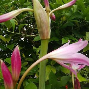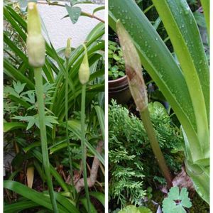背比べ☺️ 先に開くのはどちらかな? 「🌿インドハマユウがアフリカハマユウ🌿に 最近 改名されたそうなんですって。」