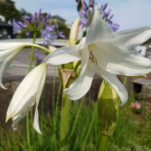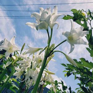 アフリカ浜木綿🌿 青空に白い花が映えて清々しいです💚