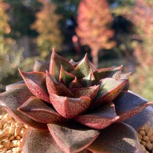 大和錦さん だいぶ緑が抜けて赤っぽくなってきました ♡ どこまで変わるのかなぁ〜 良いか悪いか分からないけど今夜から夜だけ多肉棚に寒冷紗かける事にしました