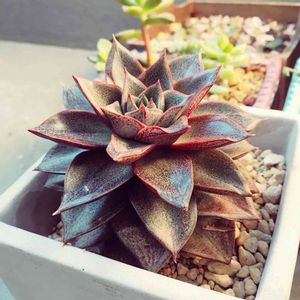 今朝 気温が上がる⤴️との事だったので、多肉棚もオープンにして出掛け🚙 帰ったら…風で💨端にあった、大和錦落下してた😱レスキューからムチムチに成長していたのですが…葉の角傷めてしまった💦 風が強い日は、オープンしない事にしよ! ついでに植替えもして、元気になってね🙏🏻